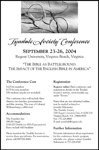 'The Bible as Battleground: The Impact of the English Bible in America'; Virginia Beach September 2004